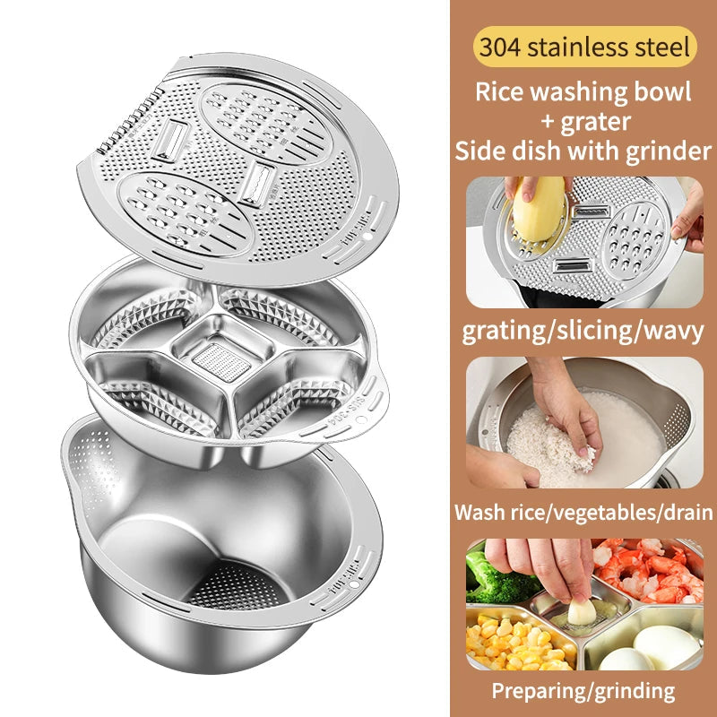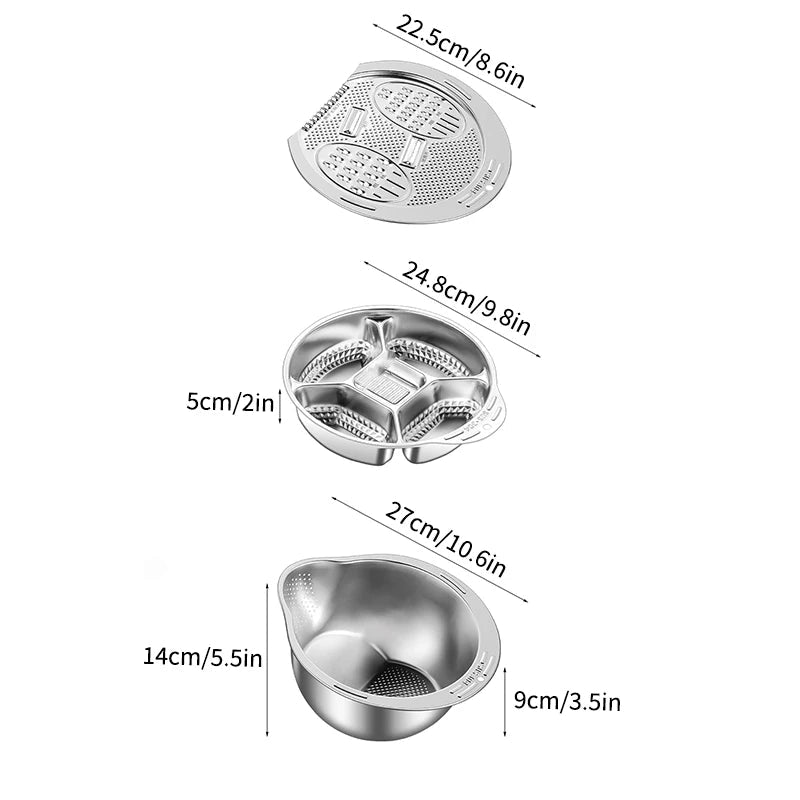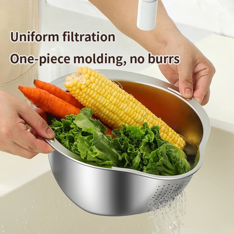 - 3-in-1 Design: Washing bowl, strainer, and draining colander
