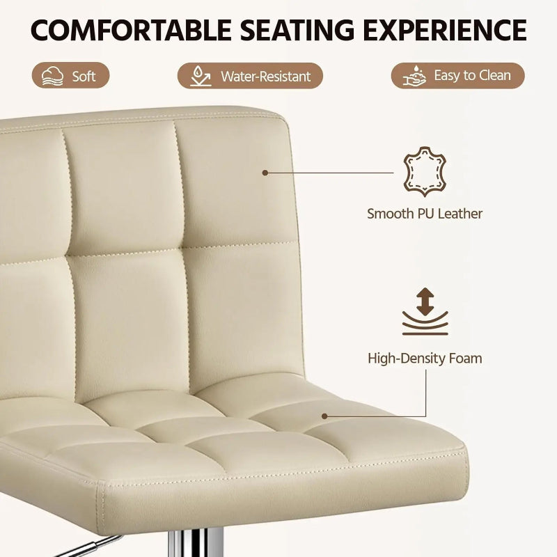 Upgrade your kitchen or home bar with this stylish Bar Stools Set Adjustable Leather Swivel Counter with Back and Footrest from Kitchen Groups, designed for comfort, durability, and modern appeal. Featuring leather upholstery, a 360° swivel seat, and height-adjustable gas lift, these counter stools provide the perfect blend of functionality and contemporary design.