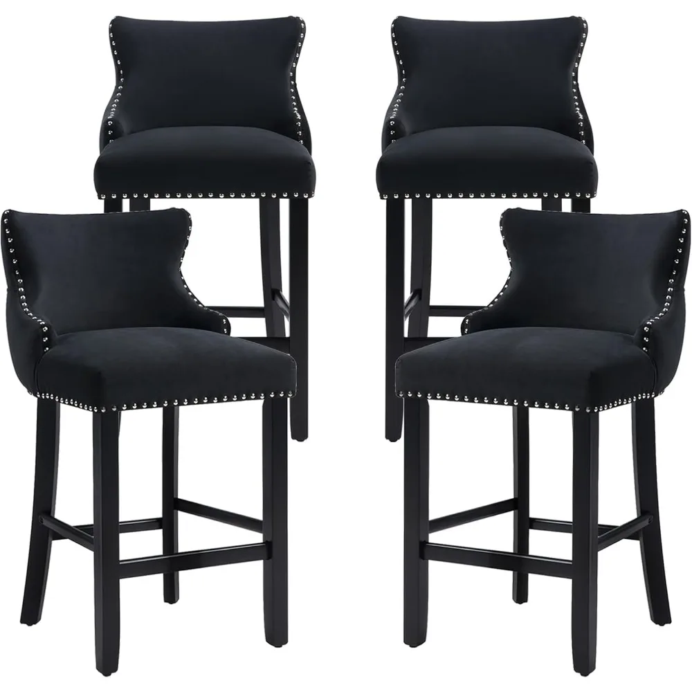 Bring elegance and comfort to your dining space with this Set of 4 Bar Stools with Back and Button Tufted Velvet Upholstered from Kitchen Groups, featuring a plush velvet upholstered seat and a button-tufted backrest for timeless style. At 27" height, these stools are perfect for kitchen islands, breakfast bars, or home entertaining areas, combining luxury with everyday functionality.