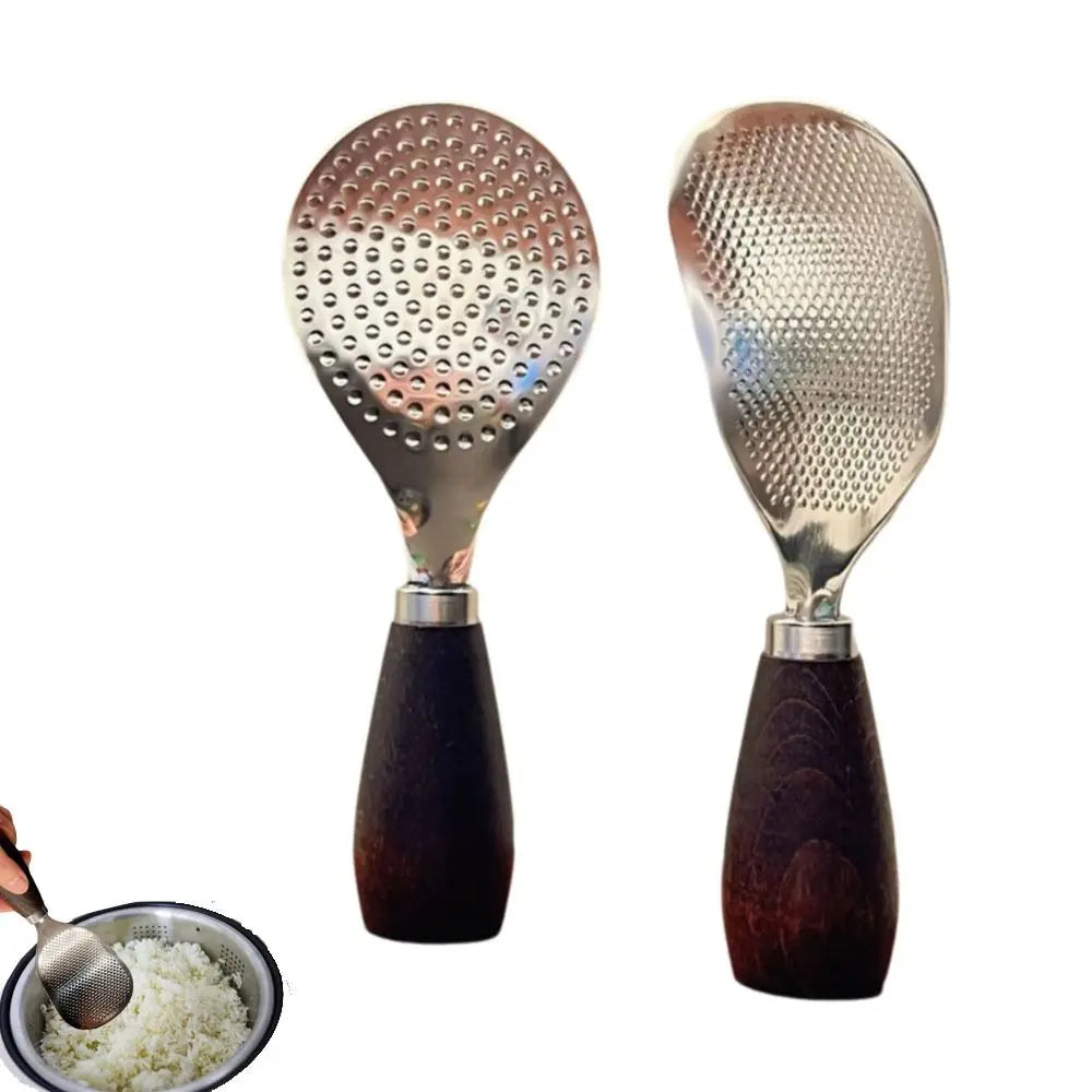 Stainless Steel Vertical Rice Shovel Spatula Wooden Handle Rice Spoon