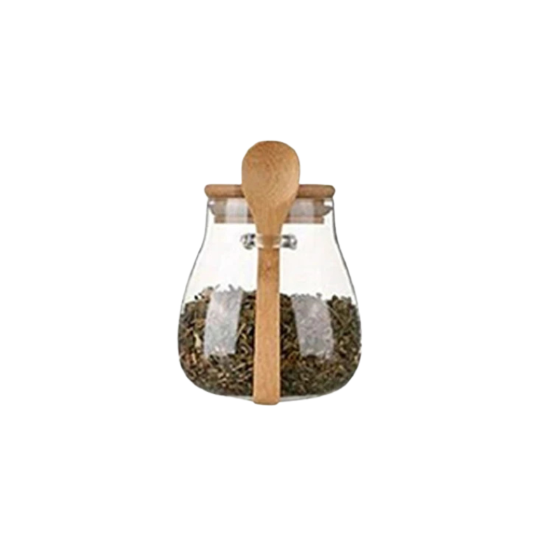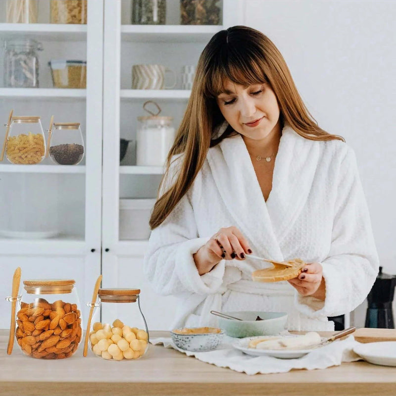 Glass Food Storage Jar with Airtight Wooden Lid and Spoon Container