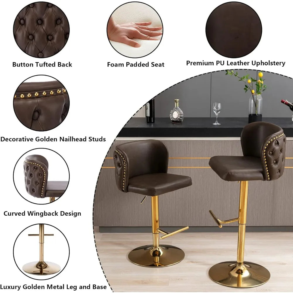 1* Faux Leather Swivel Bar Stools Set of 2 Tufted Wingback Counter Chair