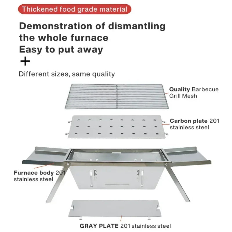 1* Stainless Steel Barbecue Stove Outdoor Charcoal Folding Barbecue Rack
