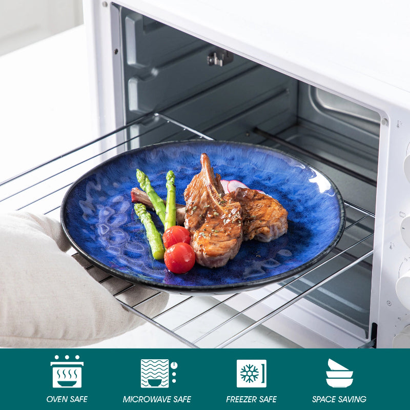 Bring celestial elegance to your table with this Starry Glaze Blue Ceramic Dinnerware Set Kitchen Dinning Tableware Kitchen Groups. Inspired by the beauty of a night sky, each piece features a unique reactive glaze, fired at high temperatures to create natural color variations, no two pieces are exactly alike.
