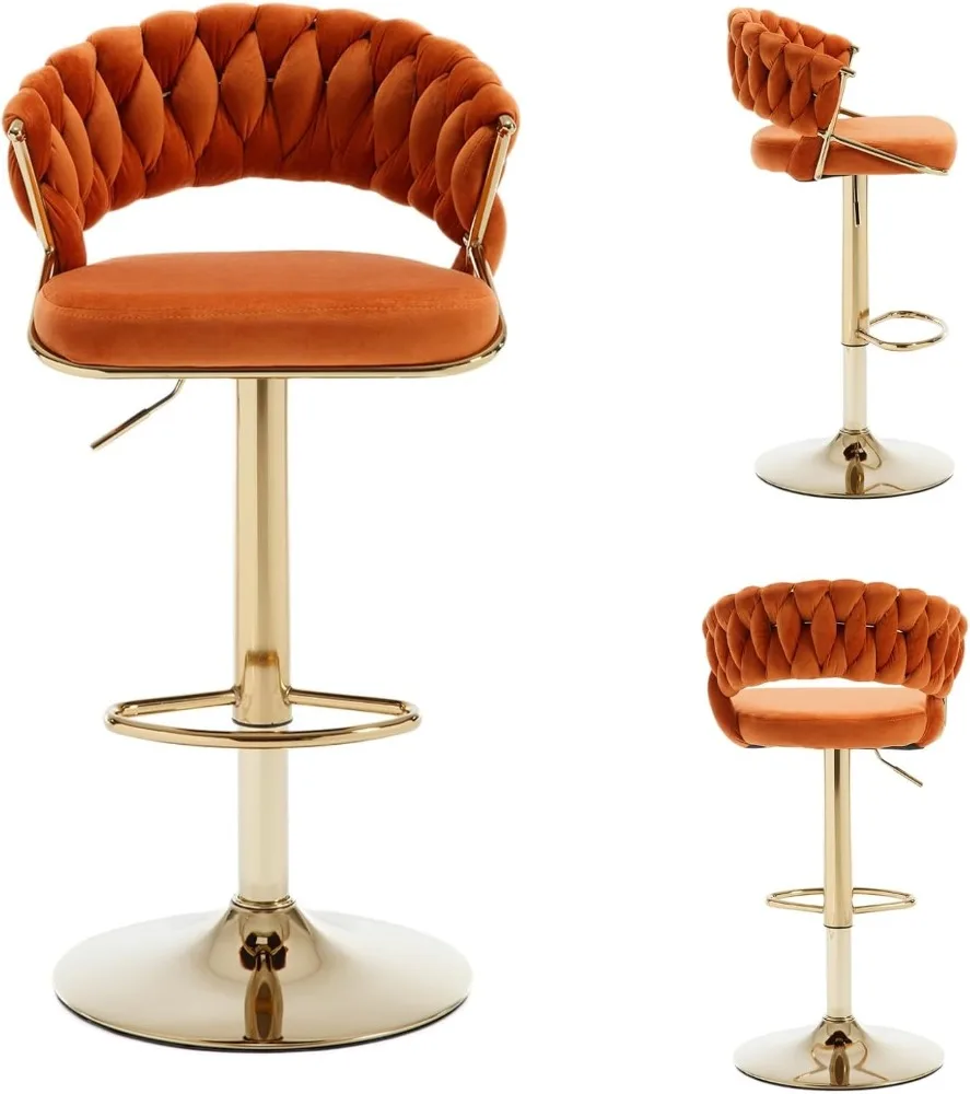- Elegant Design: Featuring a plush velvet upholstery with a woven backrest, this bar stool is designed to add a touch of luxury and sophistication to your kitchen, bar, or counter area.