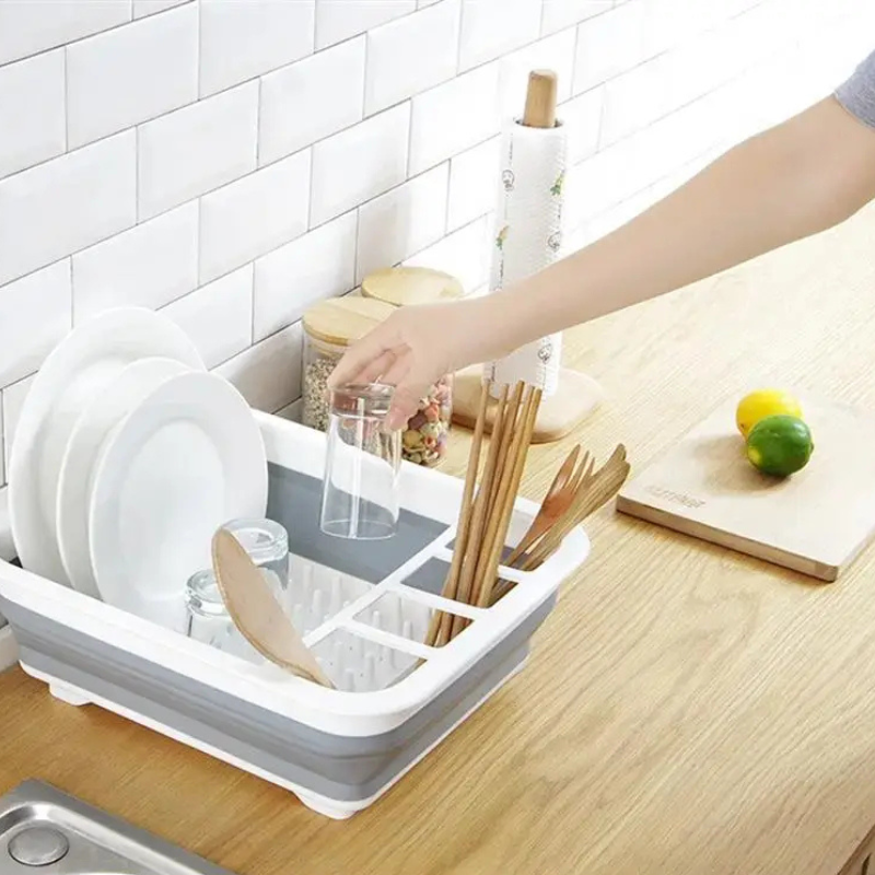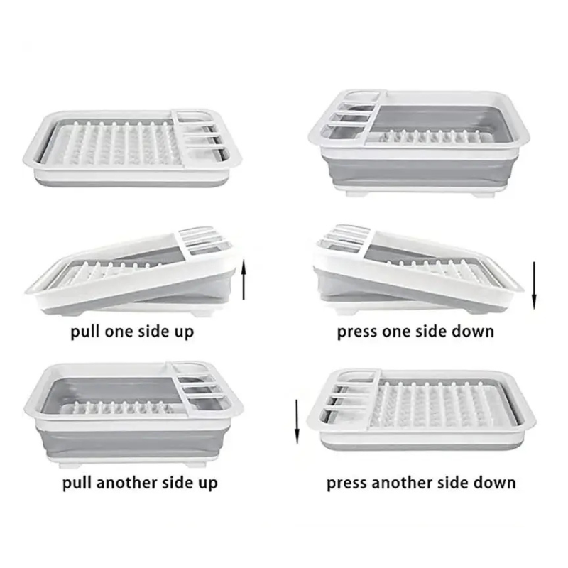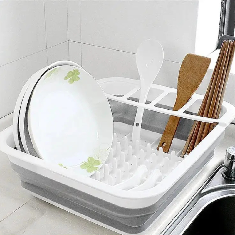 Foldable Dish Rack Kitchen Storage and Drain Tray for Tableware