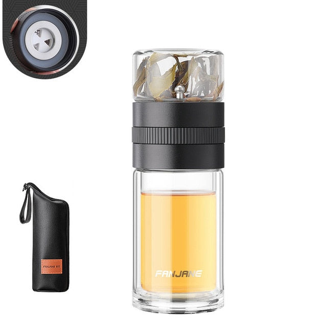 1*Double-Layer Glass Water Bottles Tea Infuser Bottle Tea Separation Mug