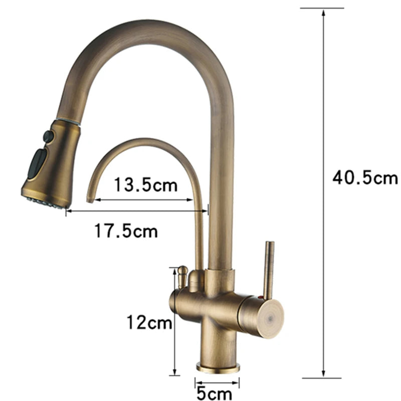 Antique Bronze Faucet Kitchen Pull Out Sink Faucet 360 Rotate Tap