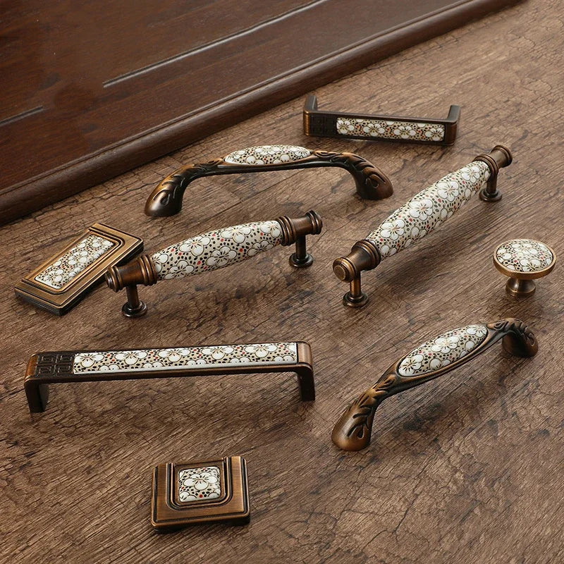 Add timeless elegance to your furniture with these Antique Bronze Ceramic Cabinet Handles Vintage Drawer Knobs Door Pulls from Kitchen Groups, inspired by classic European vintage design. Featuring a beautifully crafted ceramic knob paired with an antique bronze metal base, these handles bring charm, character, and sophistication to any space.